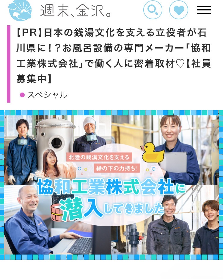 未分類 「週末、金沢。」掲載のお知らせ 未分類 2025.07.112026.01.08 カラフルカンパニーさんが運営されている「週末、金沢。」に協和工業の特集が掲載されました。 ぜひご覧ください!画像をクリックするとサイトへ移動します。